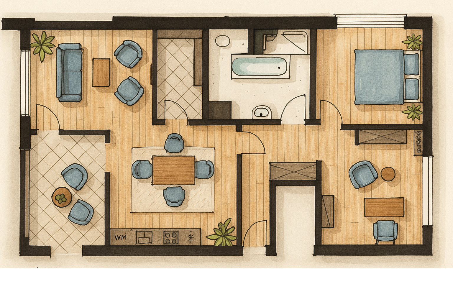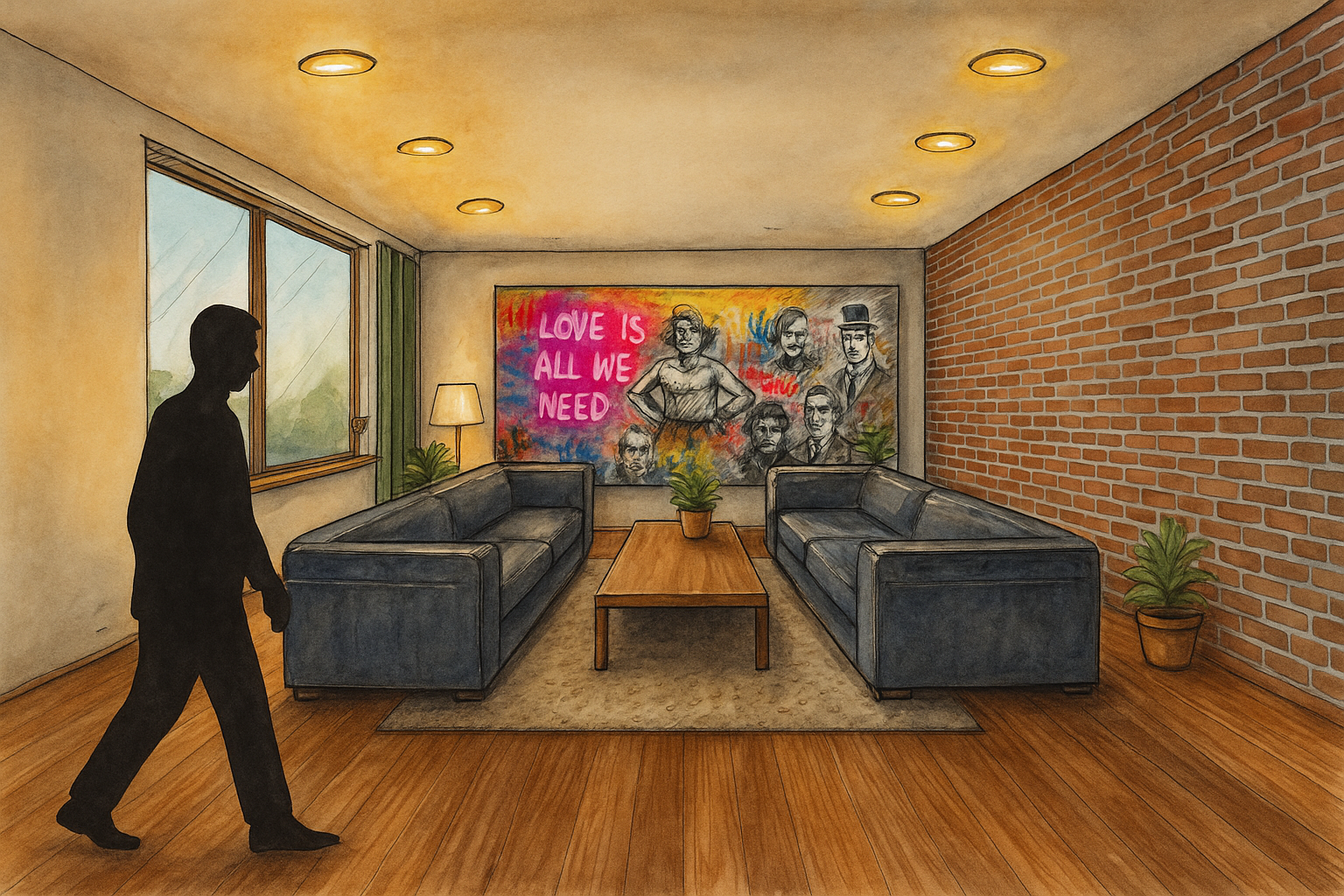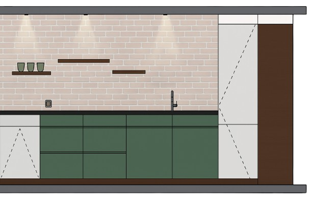 This project was designed for a young entrepreneur seeking to transform his one-bedroom apartment into a versatile space for both work and social gatherings. Inspired by a loft-like atmosphere, the design combines exposed brick with modern furniture and curated artworks, creating a sleek yet inviting environment where productivity and entertaining coexist.